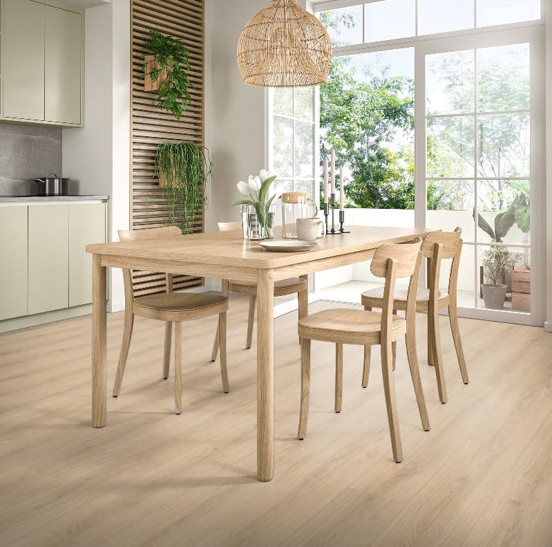 La versatilidad del Roble Paduc se extiende a las zonas más desafiantes del hogar. Gracias a su avanzada tecnología de protección contra el agua, este suelo laminado ofrece una alta resistencia a la humedad y protección contra derrames de hasta 72 horas. Esta característica lo convierte en una elección segura y elegante para instalar en cocinas y baños, donde la belleza de la madera puede ahora disfrutarse sin preocupaciones.